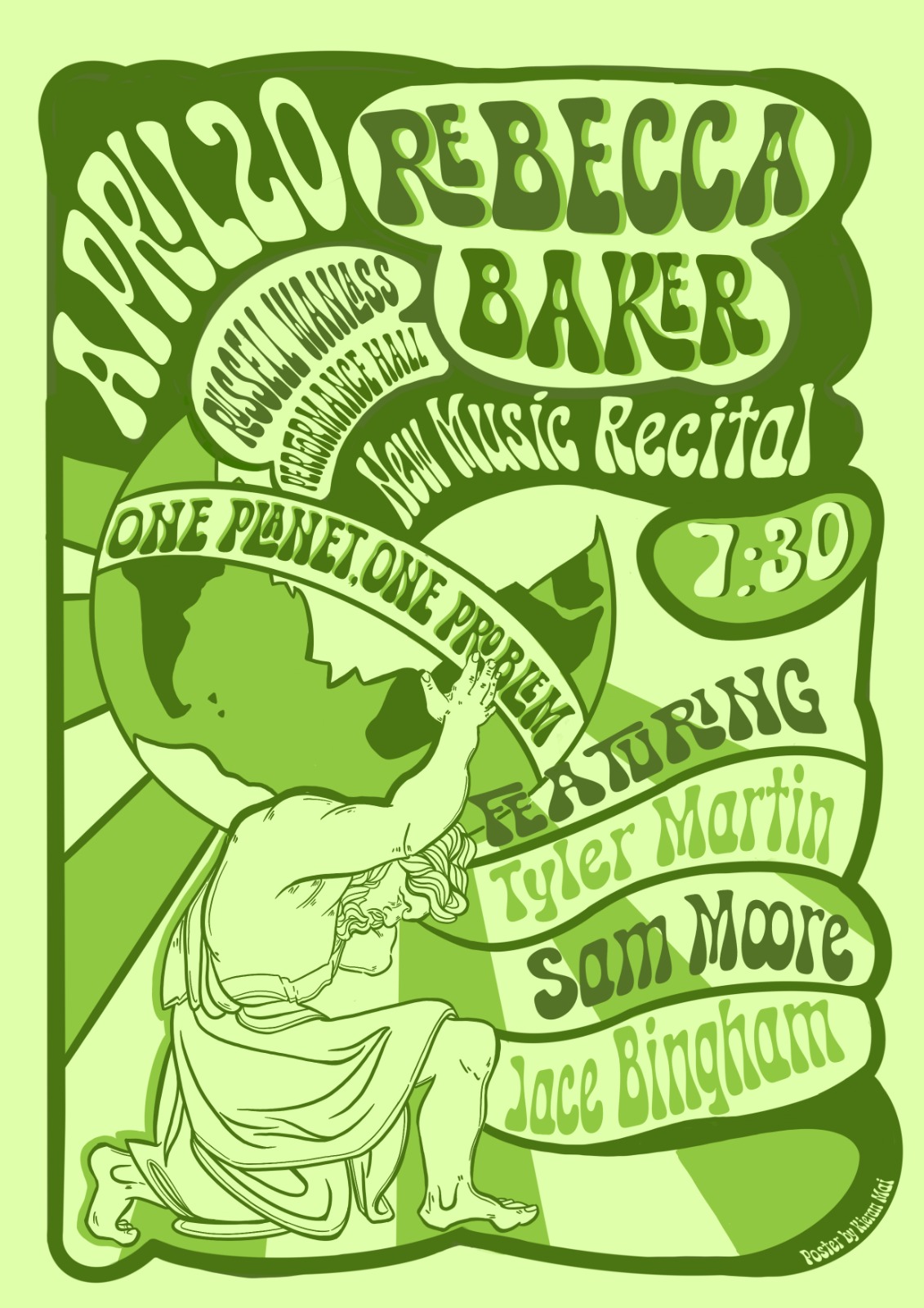 I composed this piece after watching a video of a polar bear sink into the ocean as the ice he stood on was too thin. There is a great melt happening which is threatening polar bears extinction as they lose access to their habitat and sources of food. In this piece I worked towards capturing the beauty of slow-moving glaciers with repetitive and slowly changing themes. Like the fracturing glaciers, the interaction between the three marimbas will become disjointed and out of sync.